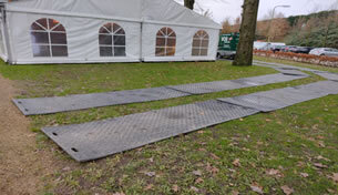 Díky plastovým pojezdovým deskám jsme na této společenské akci zajistili bezpečný průjezd techniky a ochranu trávníku. Řešení, které perfektně fungovalo. Toto je pouze ilustrační text.