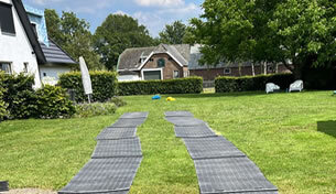 Při výkopových pracích na novém bazénu jsme ochránili zahradní trávník před těžkou technikou. Pojezdové desky skvěle posloužily – tráva zůstala neporušená. Ilustrační text.